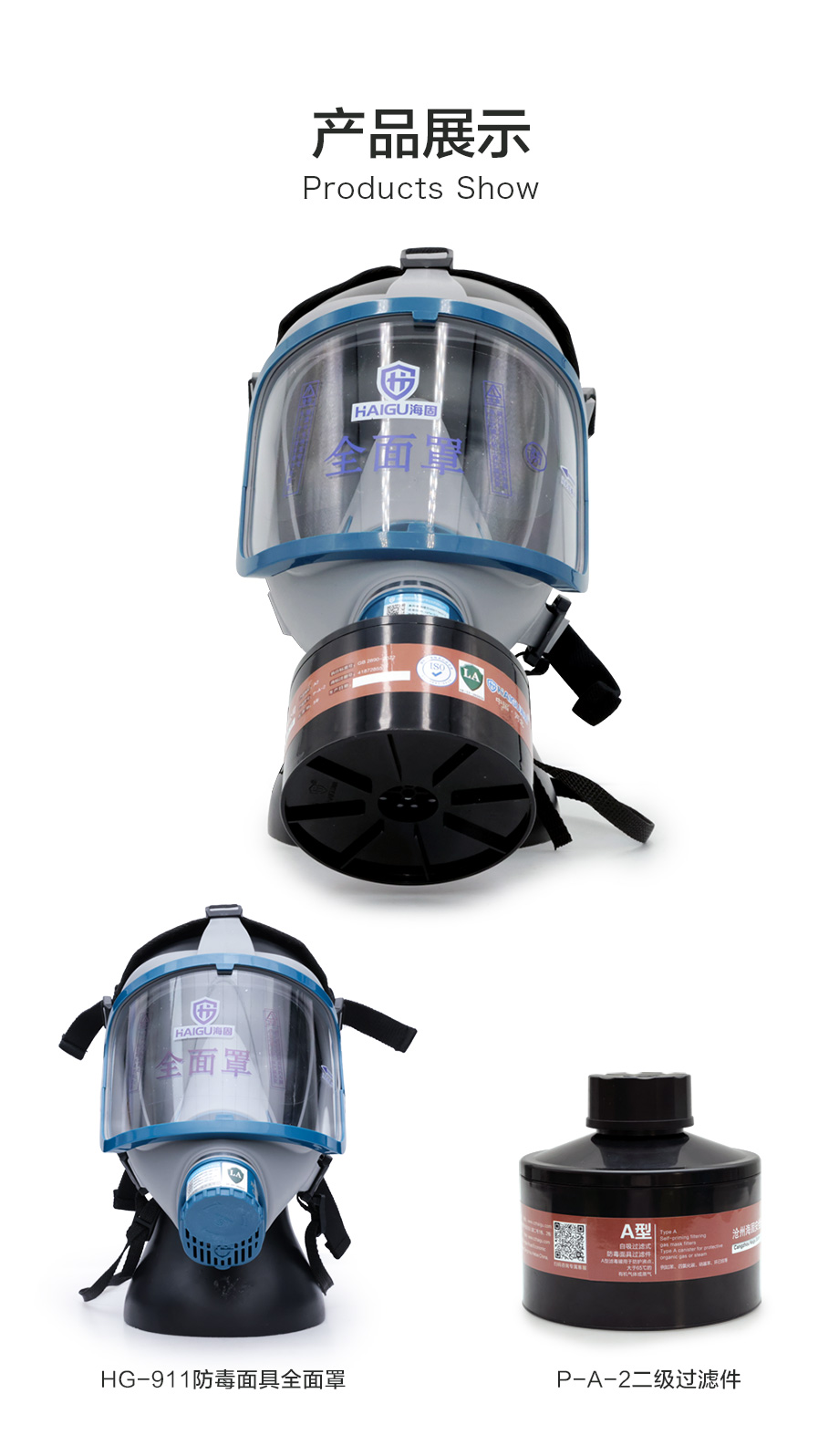 海固911全面罩+HG-ABS/P-A-2濾毒罐 活性炭防毒面具 甲醛 醇類