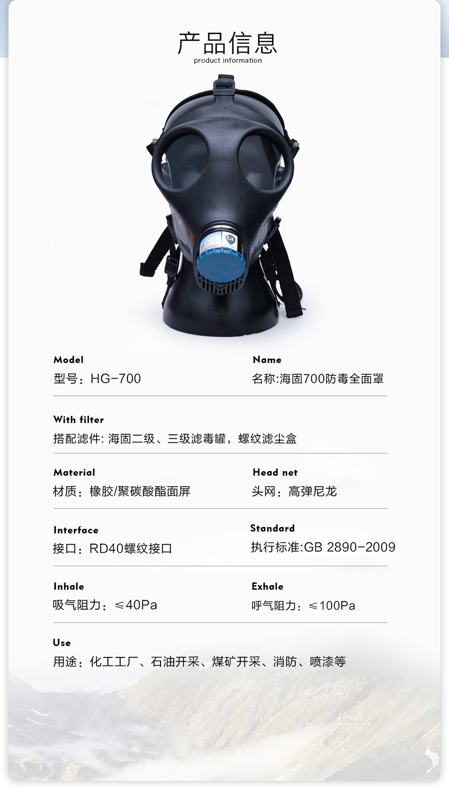 海固HG-700全面罩 正品噴漆化工防毒氣防毒面具