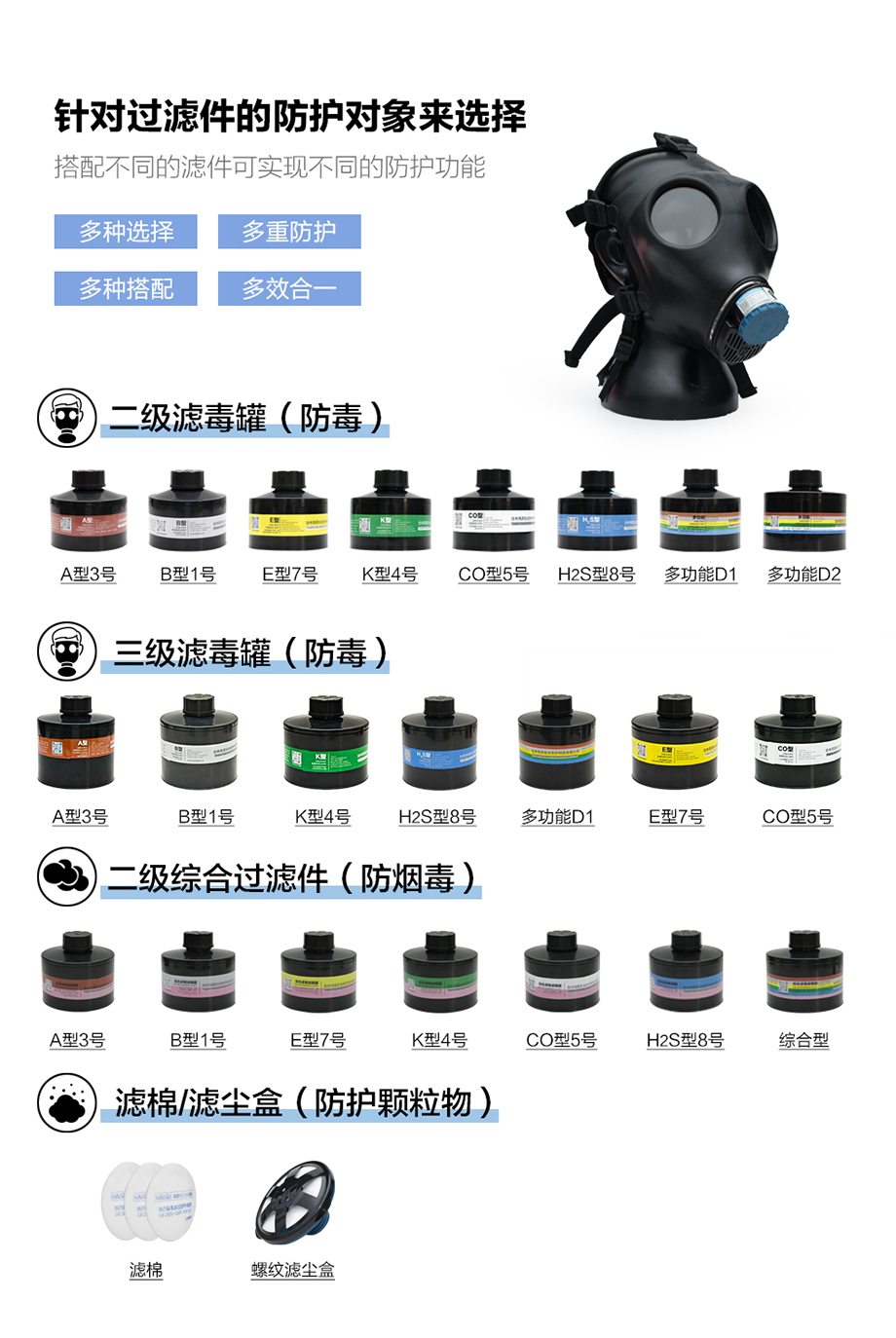 產品名稱:自吸過濾式防毒面具全面罩