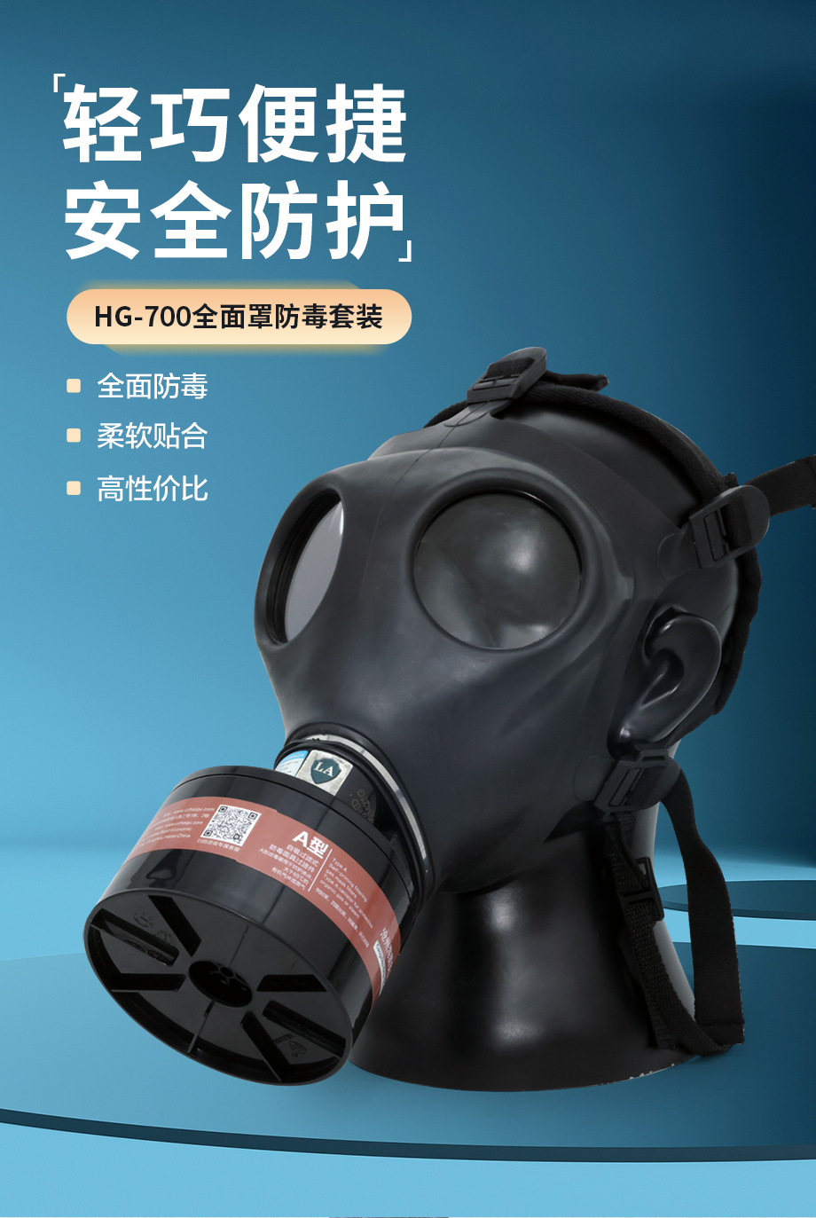 海固700全面罩+HG-ABS/P-A-2濾毒罐 活性炭防毒面具 甲醛 醇類