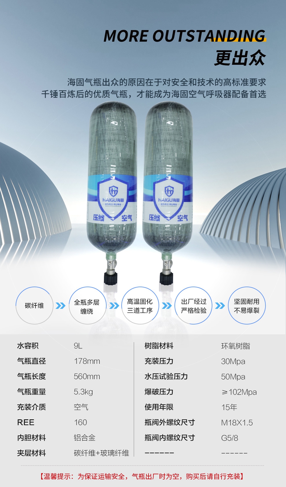 注意:空氣呼吸器氣瓶不包含壓縮空氣,充氣請聯系客服