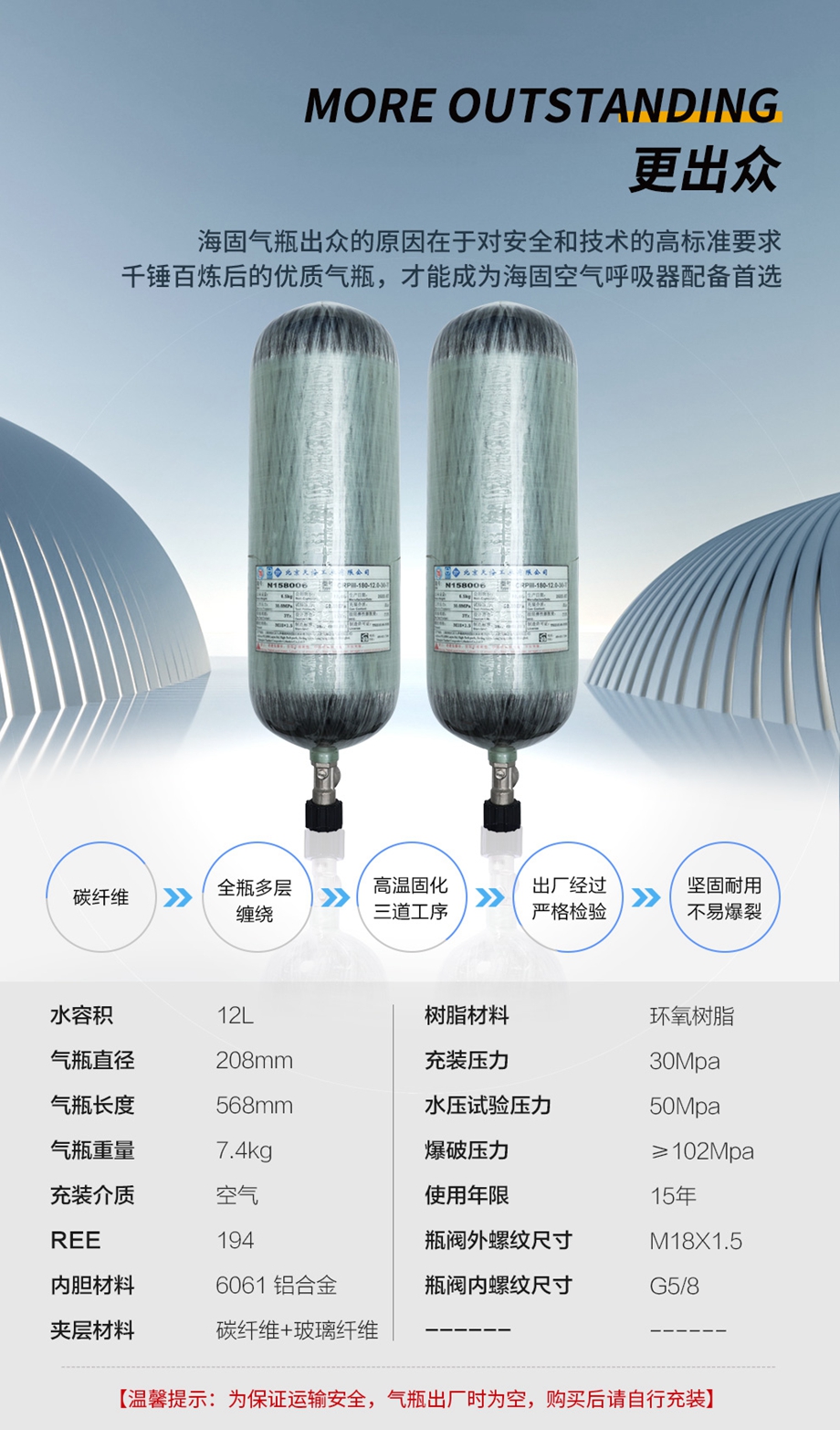 海固HG-RHZKF/12F正壓式空氣呼吸器碳纖維復(fù)合氣瓶