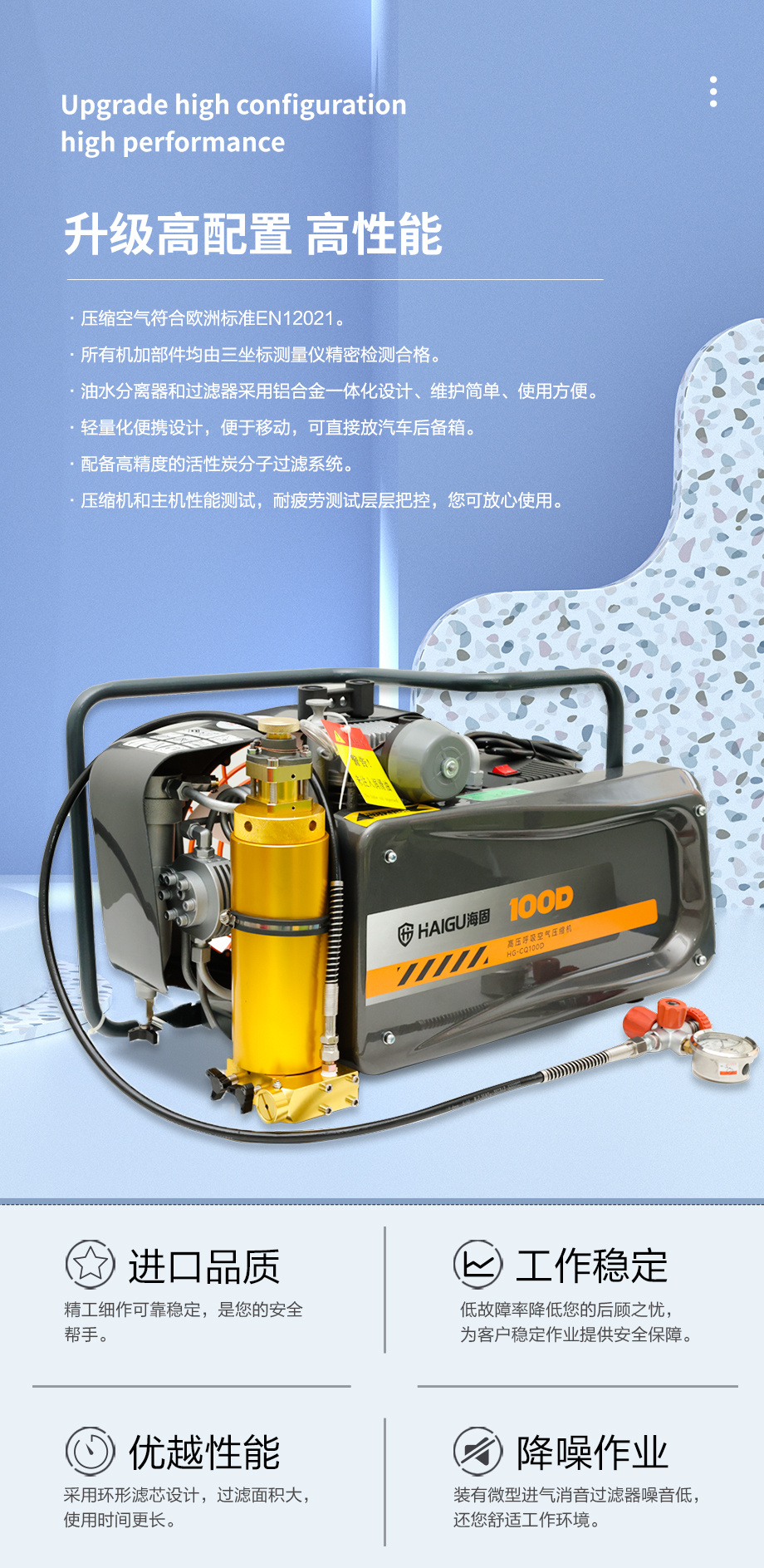 海固HG-CQ100D高壓呼吸空氣壓縮機(jī) 正壓式空氣呼吸器充氣泵