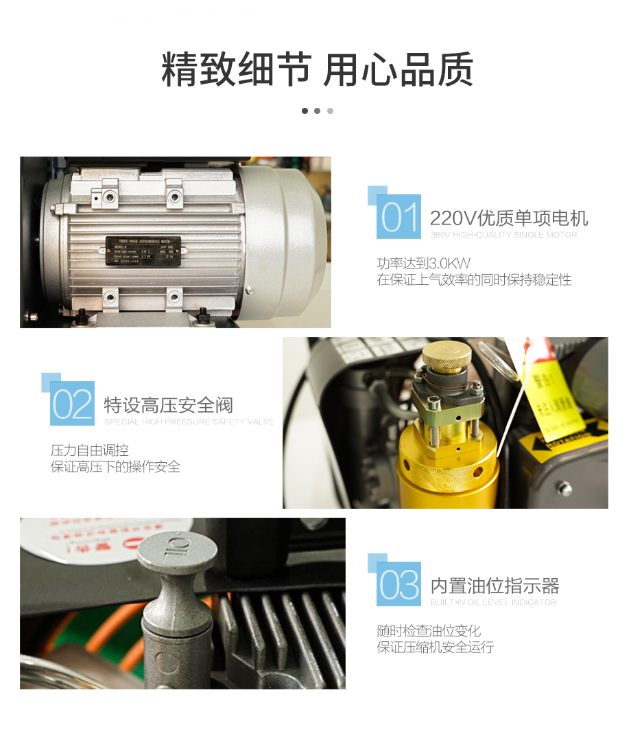 產(chǎn)品規(guī)格:220V 50HZ 2.2KW 單相電機(jī)100L/min三級(jí)缸