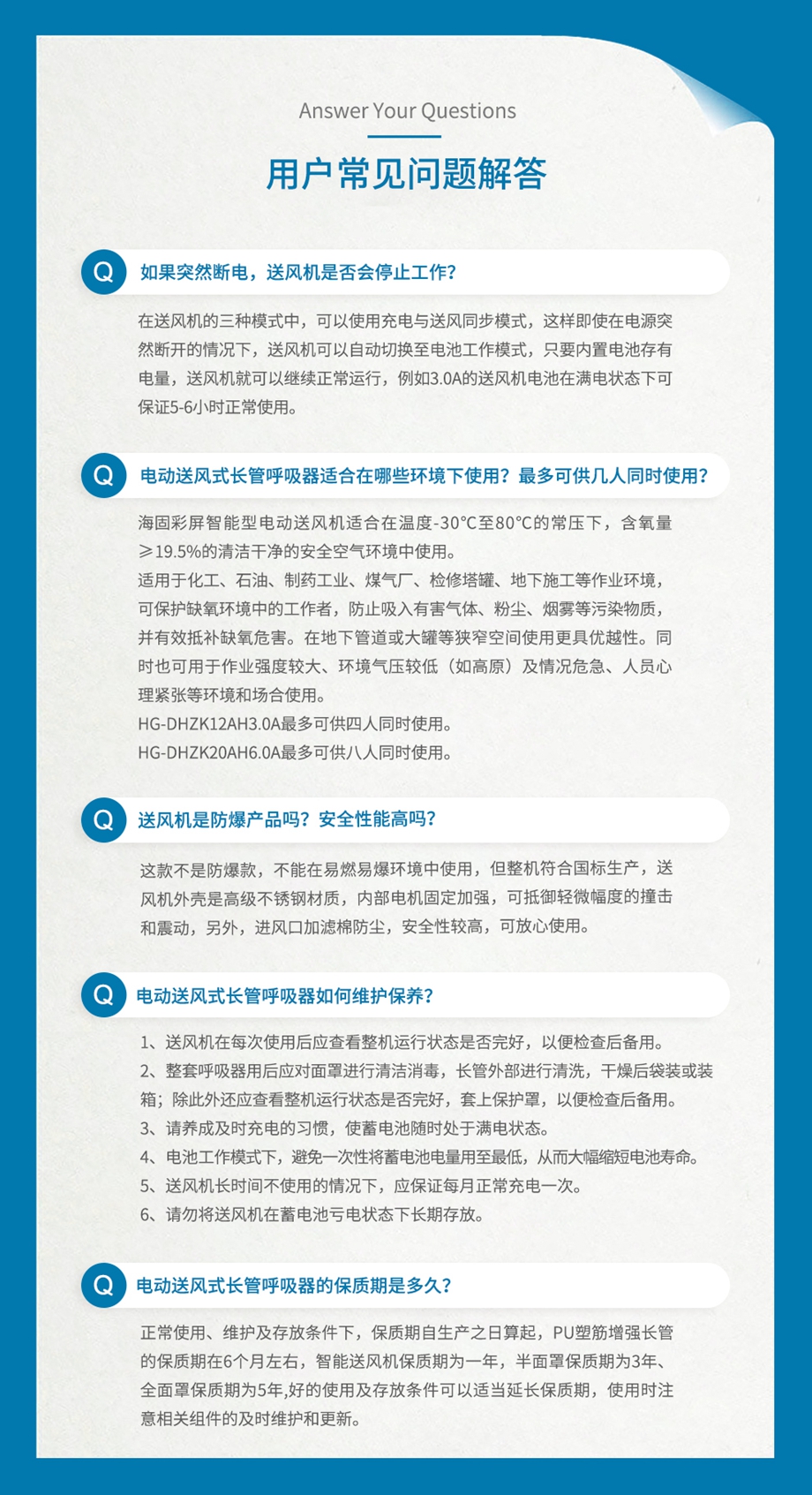 海固HG-DHZK20AH6.0A智能型彩屏 全面罩 四人電動送風式長管呼吸器