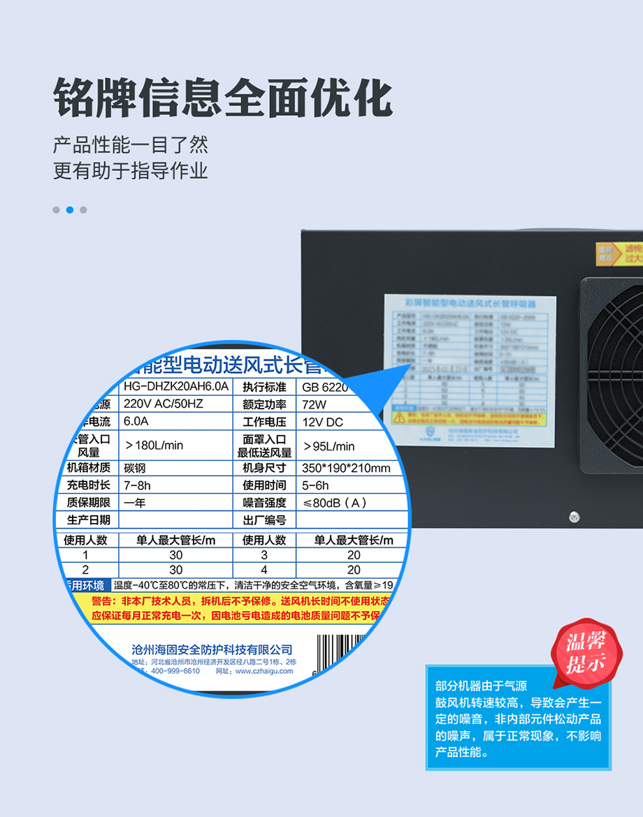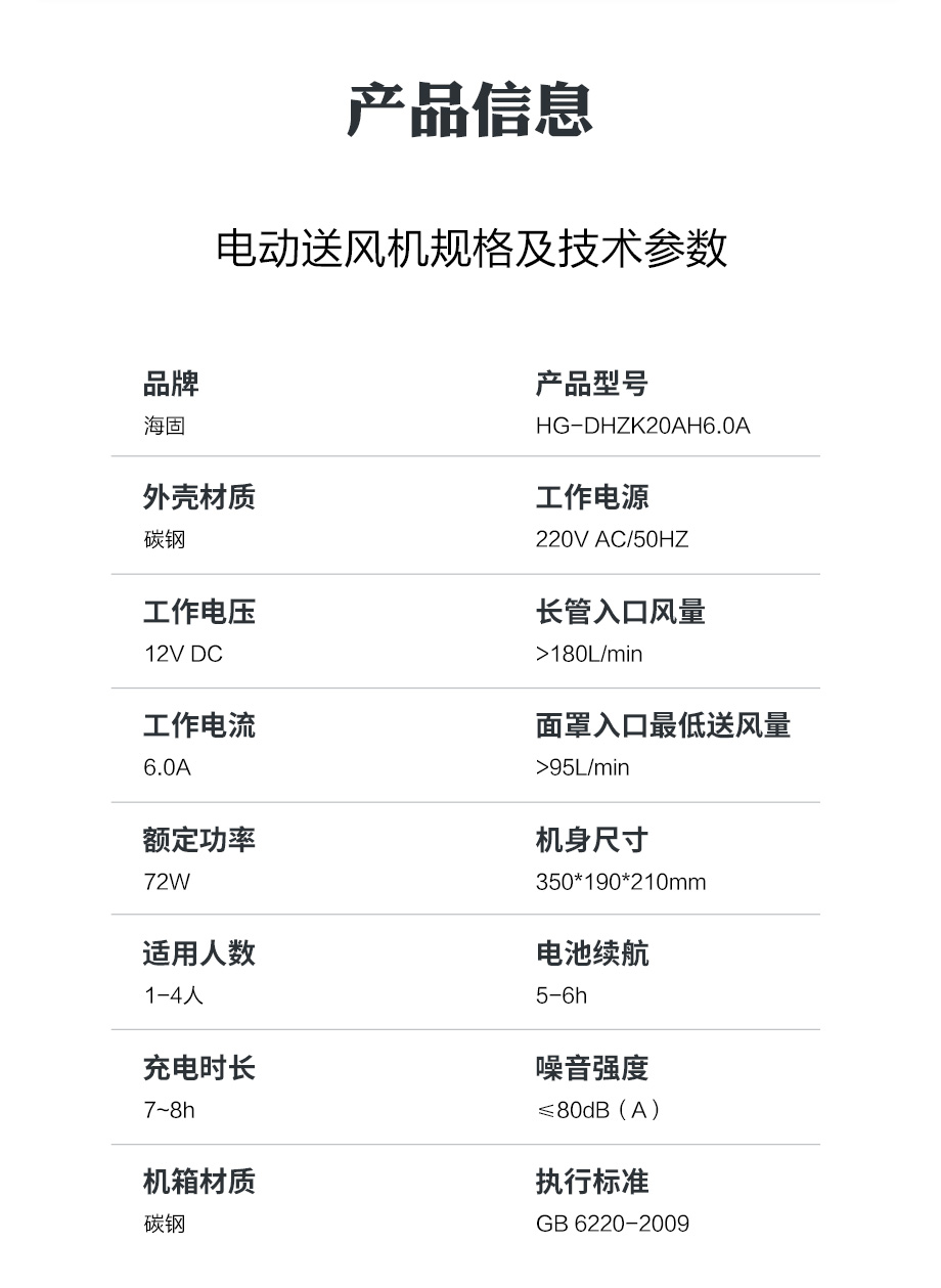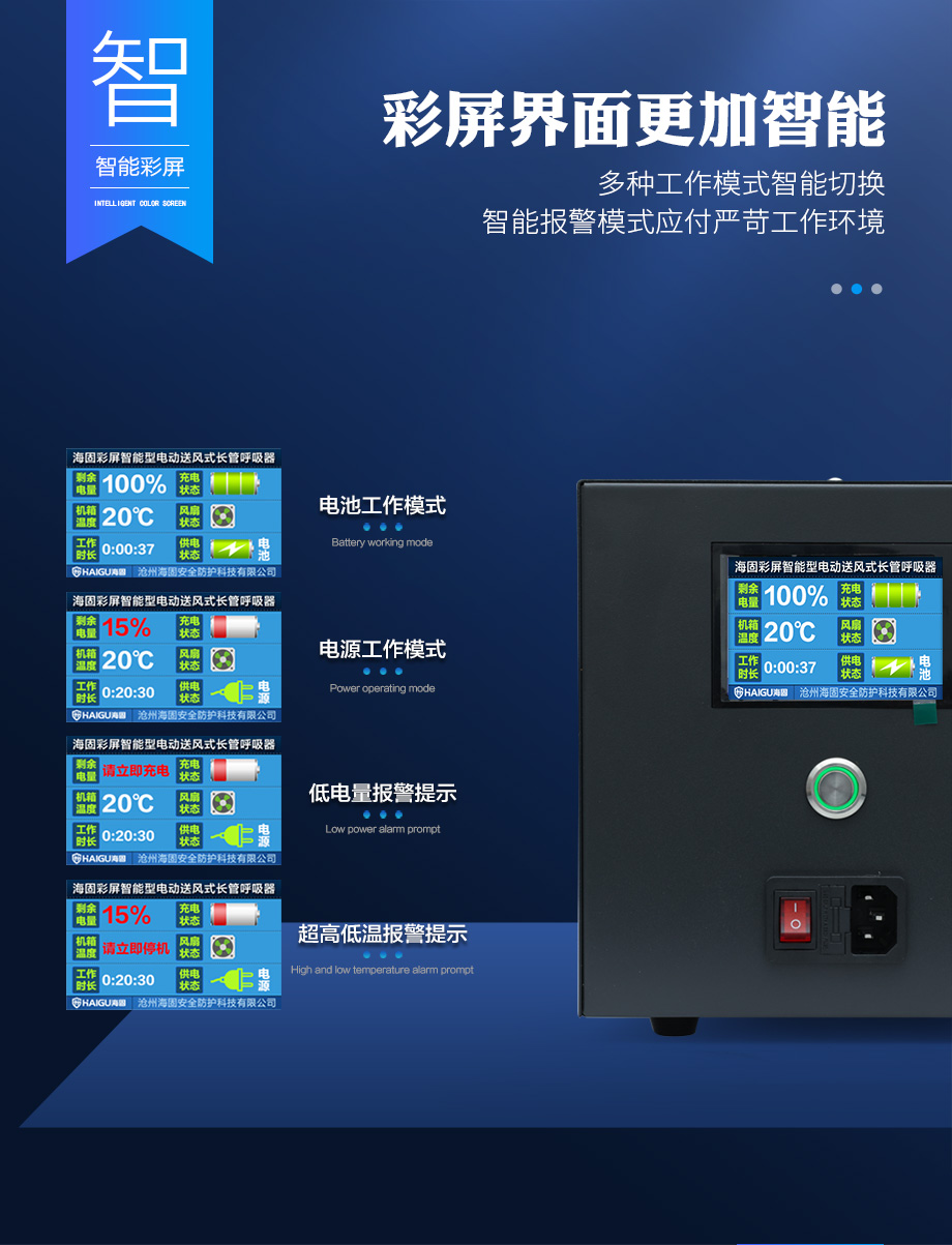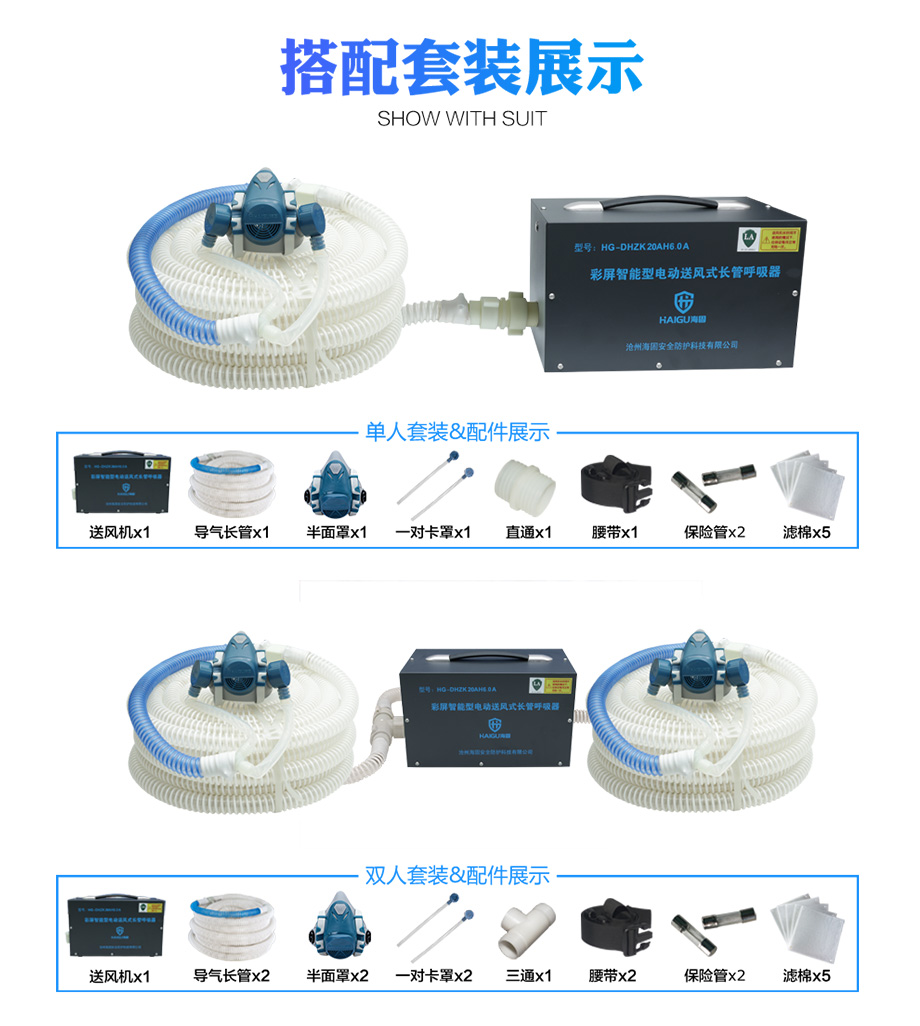 海固HG-DHZK20AH6.0A智能型彩屏 半面罩 單人電動送風(fēng)式長管呼吸器
