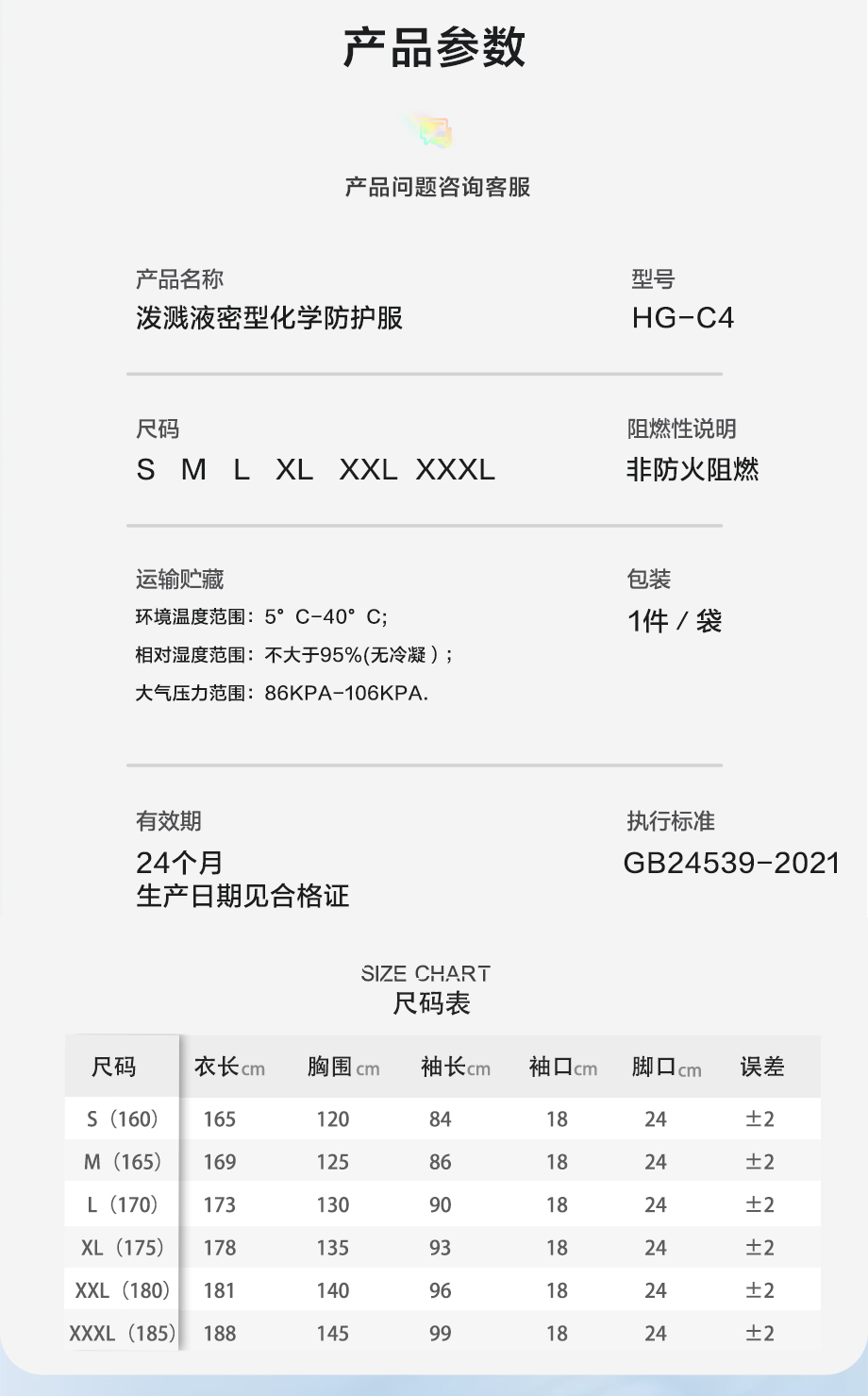 海固HG-C4潑濺液密型化學(xué)防護(hù)服 輕型化學(xué)防護(hù)服