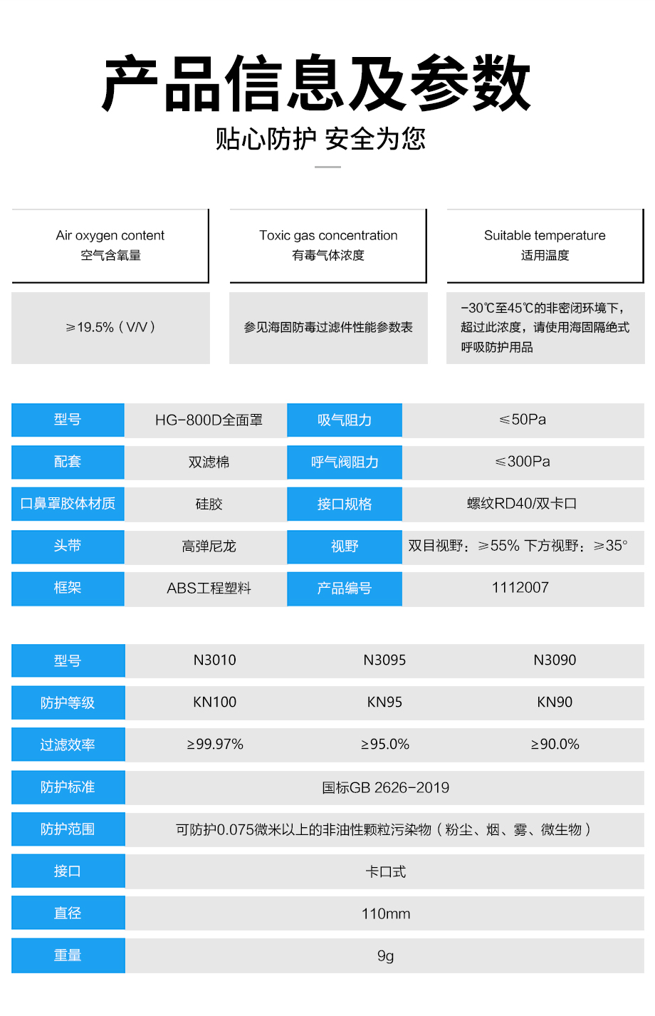 海固800D全面罩+KN100/KN95/KN90非油性顆粒物濾棉 防塵套裝