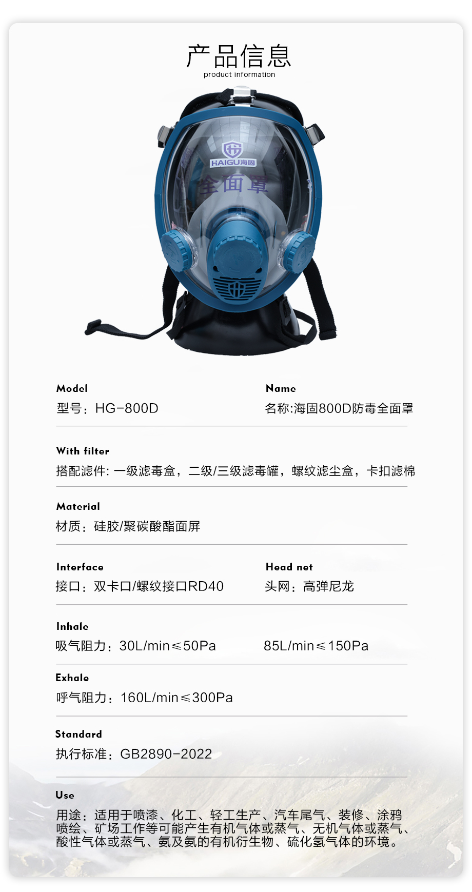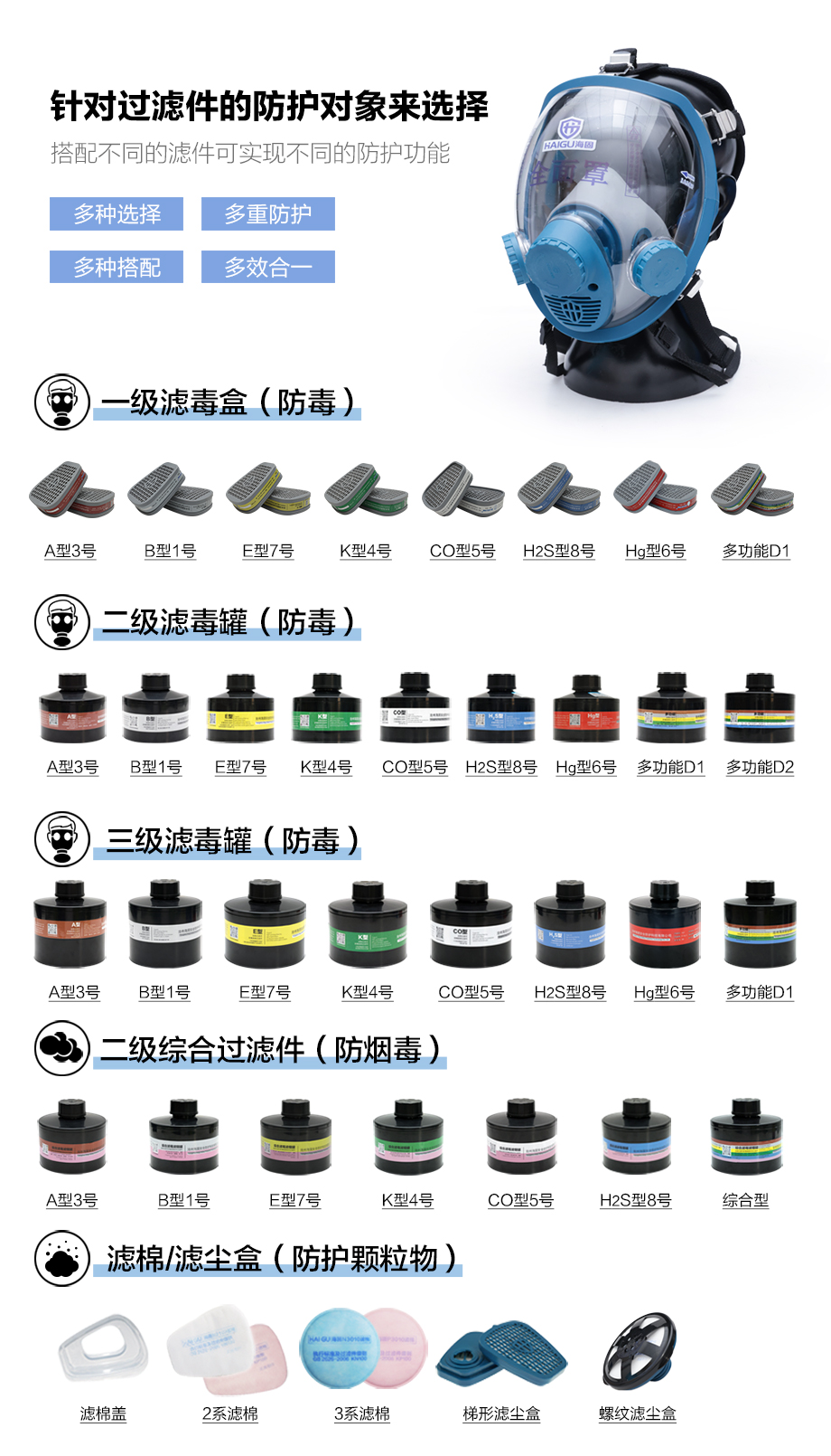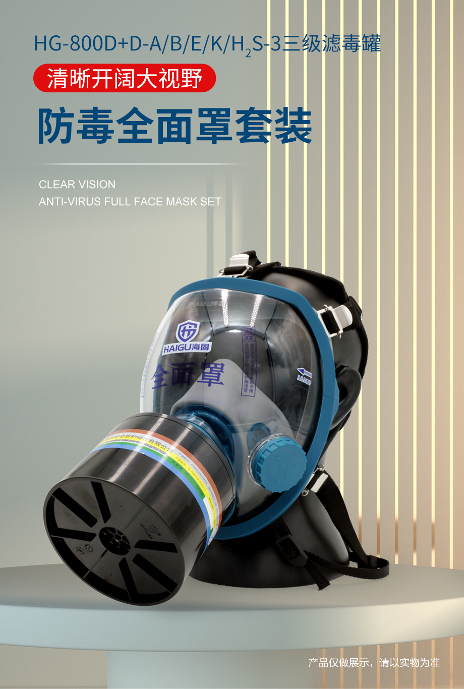 海固800D全面罩+HG-ABS/D-A/B/E/K/H2S-3濾毒罐 綜合防毒氣套裝