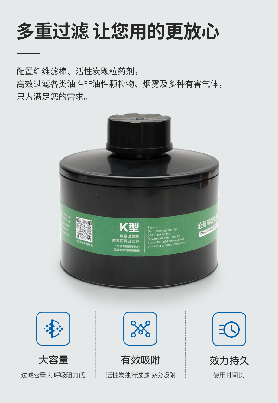 海固800D全面罩+HG-ABS/P-K-3濾毒罐 氨氣防護(hù)套裝