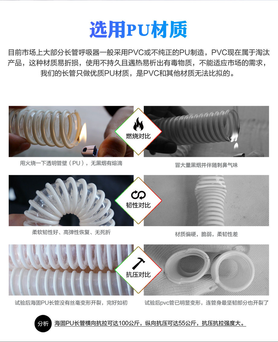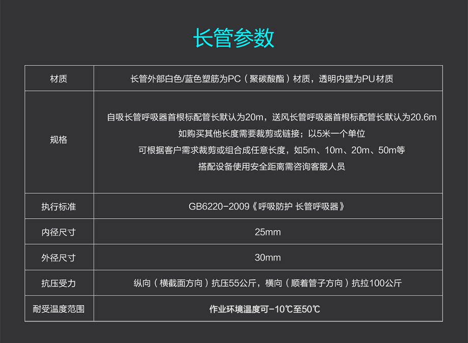 長管呼吸器藍白色塑筋增強管 長管呼吸器專用 5米10米20米