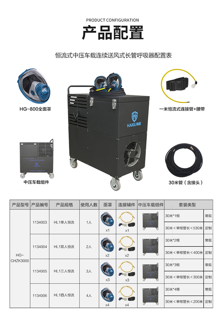 海固HG-CHZK3000 全面罩 中壓車載連續送風式長管呼吸器 升級開關插座組件 供電穩定