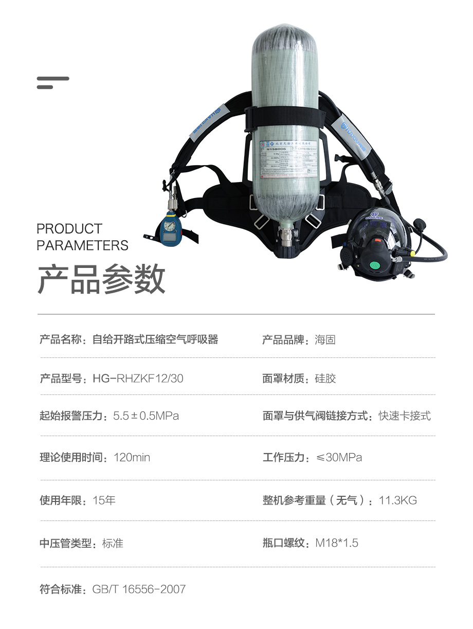 海固RHZKF12/30 正壓式空氣呼吸器 (智能壓力表+壓力平視裝置)